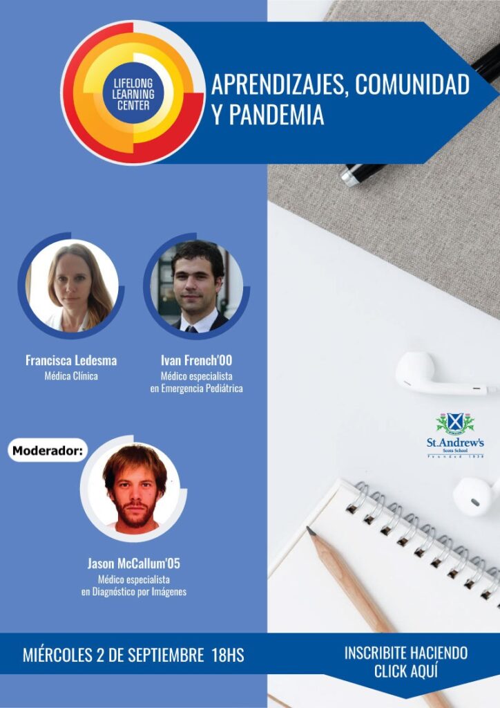 Los invitamos a un encuentro con Iván French’00, médico especialista en Emergencia Pediátrica y Francisca Ledesma, médica clínica. – ¿Que aprendizajes significativos obtenemos a partir de la pandemia? – ¿Que implica ser comunidad en el contexto pandemico? – La ciencia, la medicina y sus implicancias en pandemia Pueden registrarse en este link