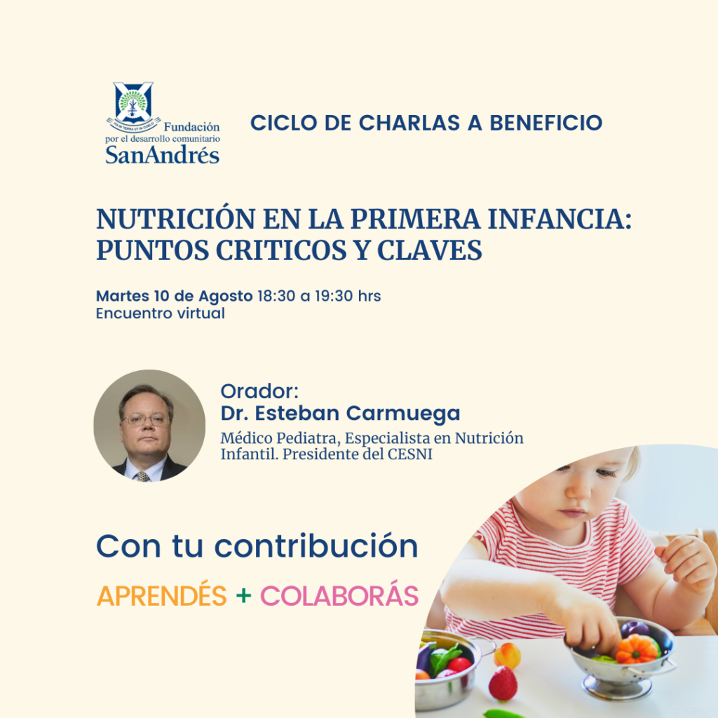 El martes 10 de agosto tuvo lugar la primer charla en el marco del «Ciclo de Charlas a Beneficio» llevado adelante por la Fundación por el Desarrollo Comunitario San Andrés. Fue un encuentro muy enriquecedor, donde más de 50 personas asistieron de manera virtual para escuchar al médico pediatra Esteban Carmuega exponer acerca de los […]